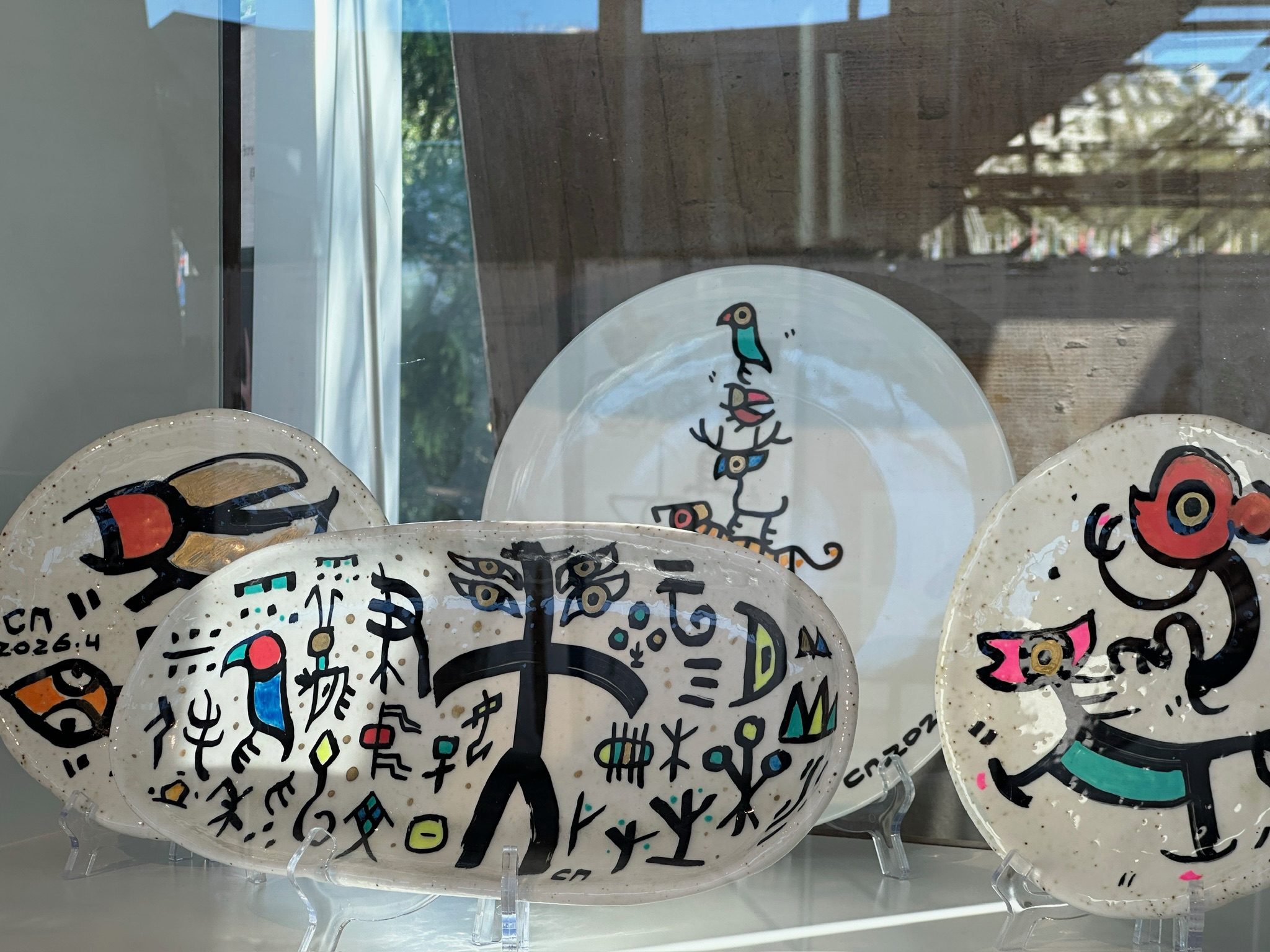特别策划:在法国本地手作陶瓷盘上的手绘甲骨文字画“仓颉造字”等系列作品