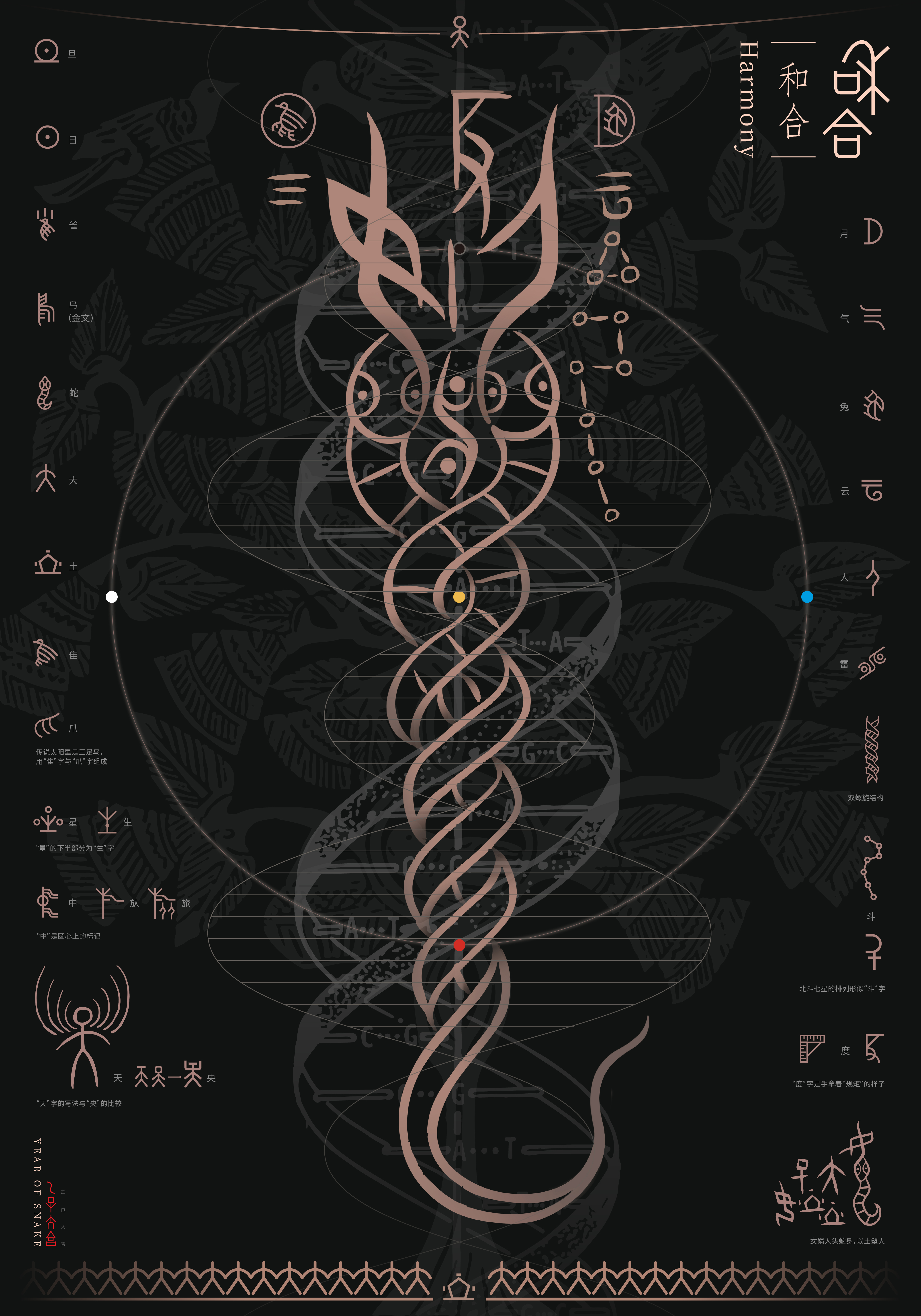 《装饰》杂志2025年度封面设计,采用十二地支甲骨文作为设计骨架,配以装饰性生肖动物图形
