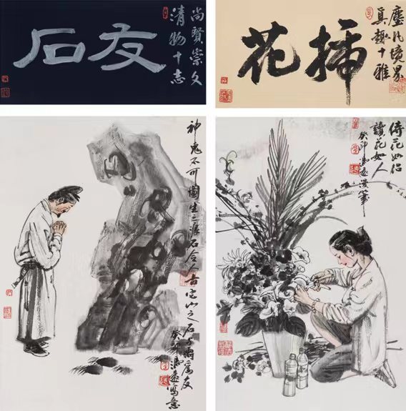 冯远要求学生着眼于人与历史、人与社会、人与艺术的诸重关系,在历史观照和现实关怀之间锤炼技法,修炼胸襟。同时,他又从每个学生自身的一些优点和特点去启发、引导他们创造自己个性化的笔墨语言。在“铸牢中华民族共同体意识”方针的指引下,冯远与他的学生们举办此次中国人物画教学的主题展览,通过他们的作品,展示中国人物画教学相沿、传承、流变的文脉系统,以及在同出一门的师法中所呈现的个性化面貌的差异。