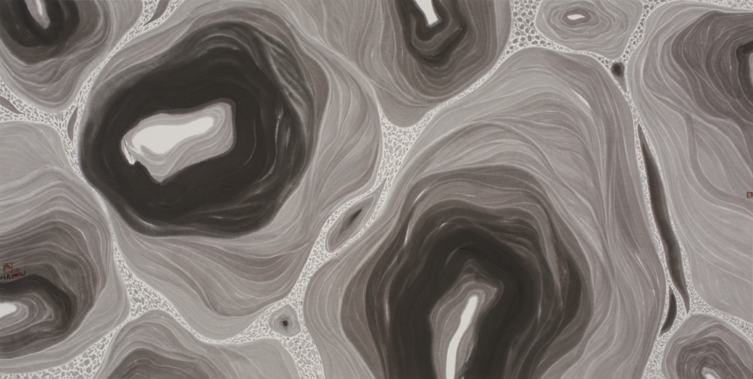 马泉教授深厚的学术背景和丰富的创作经历,让自然与自我形成自洽。通过水墨媒材,表现自然沙漠景观的神秘与静谧。通过油画语言,展现微观世界的精微与丰满。借助现代科技,开辟全新的实验路径。如《时间雕刻》版画系列中借助光学显微的技术将砂粒放大万倍,通过个体与群体的记录,传达从微观到宏观的认识方法;《马记综合材料》系列中应用木雕与丙烯勾勒的沙漠肌理,探讨着时空尺度下的自然物质转化。应该说,马泉教授与沙漠的深刻关联意味着人与自然的深度对话,从认识自然、理解自然到表达自然,他在视觉艺术秩序的构建与重构中也更加完善了艺术家的自我重塑。