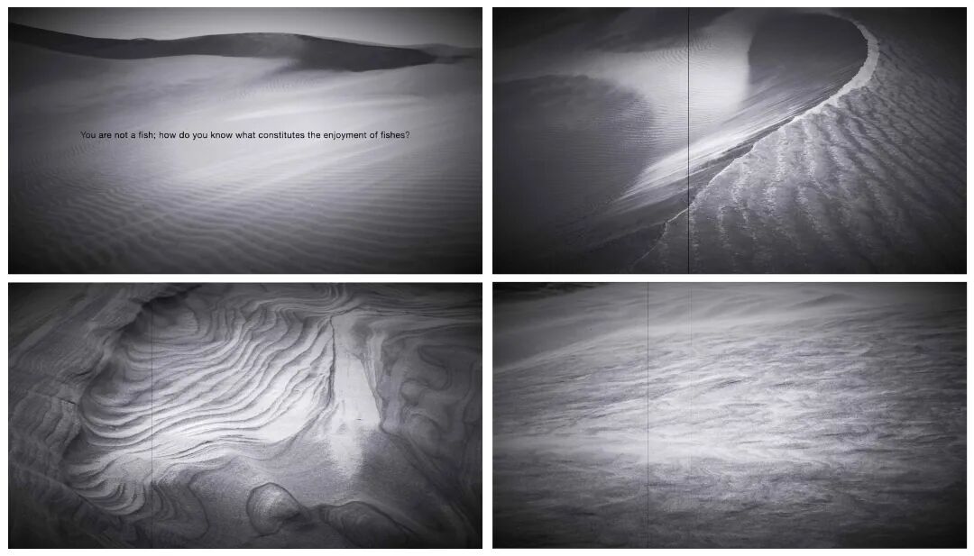 聚焦艺术家马泉教授的艺术表达,作品以沙漠的自然性与媒介的多元化记录着他近二十年来的艺术实验路径。马泉教授热爱自驾,深入沙漠,远离城市喧嚣,并由此唤醒艺术家与自然、空间、社会等客观世界的心灵对话。对他而言,周遭的一切自然元素提供了无穷的创作素材,所涉足的“无人区”成为隔绝现代社会的哲学思辨场域。