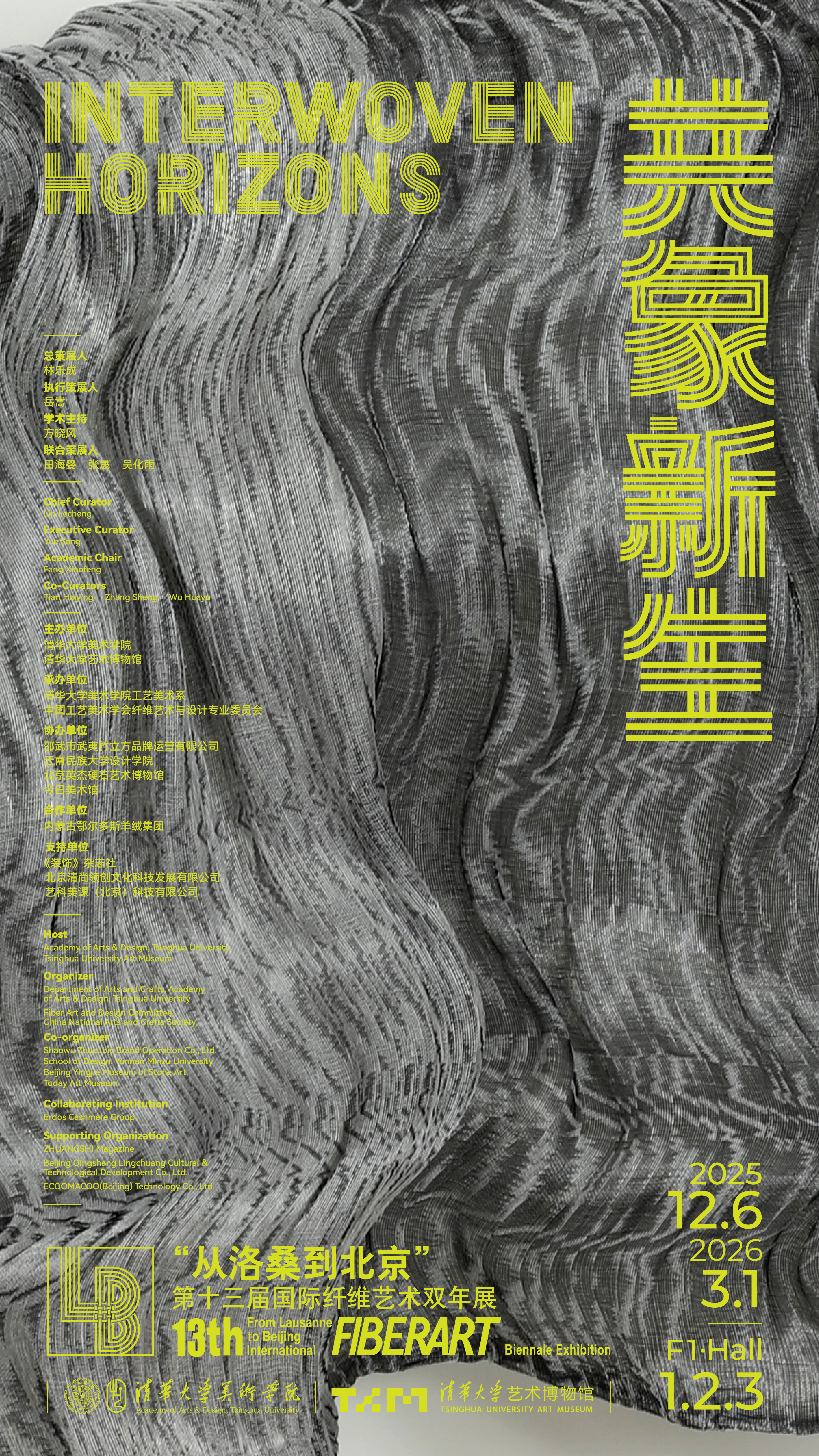 本届展览“从洛桑到北京”第十三届国际纤维艺术双年展将以“共象新生”为主题,聚焦纤维艺术在材料文化、生态伦理与科技演化中的交汇路径,关注纤维媒介在当代表达中如何承载触觉经验与文化传承,如何连接本土与全球、传统与未来。